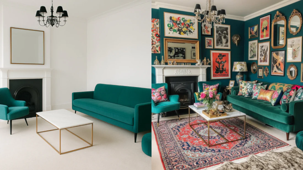 Maximalism is the complete opposite. It celebrates abundance, bold colors, layered textures, and expressive decor. It is about telling your story through your space.